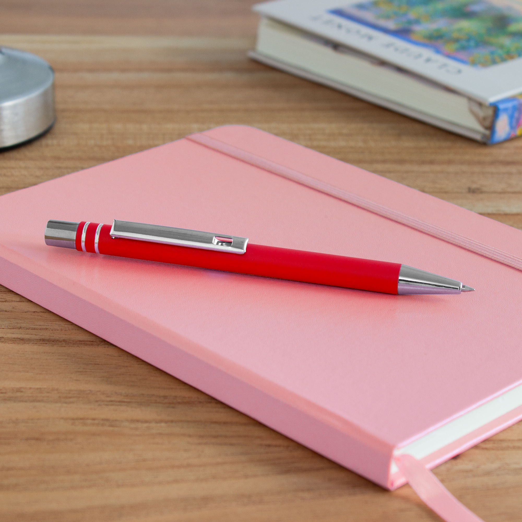 Bolígrafo retráctil. Tinta gel. Cuerpo metálico en diferentes colores acabado mate. Clip metálico, puntera y pulsador metálicos.